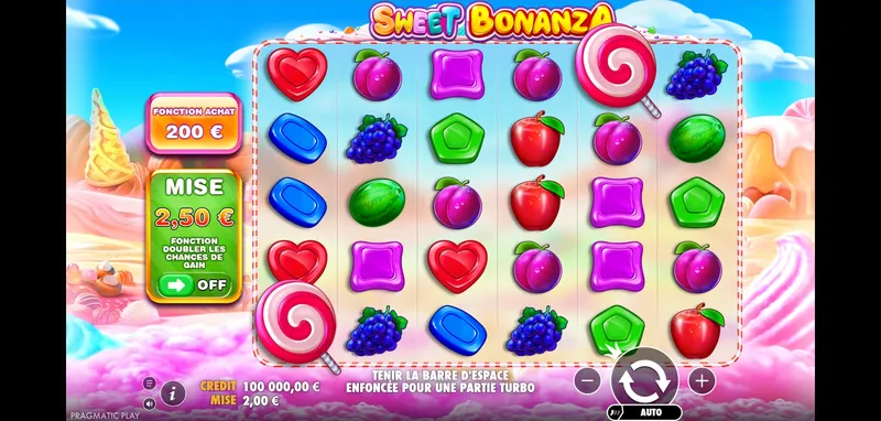 Le thème sucré de Sweet Bonanza attire les joueurs grâce à ses graphismes détaillés. Les rouleaux présentent des fruits colorés et des bonbons scintillants, créant une ambiance ludique et festive. Cette esthétique visuelle épouse parfaitement le concept du jeu.